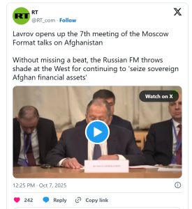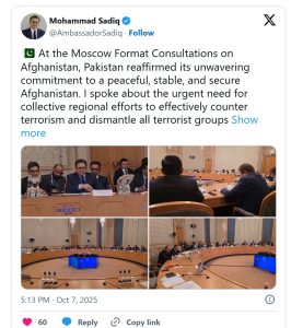 اس اجلاس میں پاکستان، چین، روس، بھارت، ایران، قازقستان، کرغزستان، تاجکستان اور ازبکستان کے خصوصی نمائندے شریک ہوئے، جبکہ افغانستان کی عبوری حکومت کے وزیرِ خارجہ امیر خان متقی پہلی مرتبہ مکمل رکن کی حیثیت سے شریک ہوئے۔شرکائے اجلاس نے زور دیا کہ افغان حکومت دہشت گردی کے خاتمے کے لیے مؤثر اور جامع اقدامات کرے تاکہ اس کی سرزمین کسی دوسرے ملک کے خلاف استعمال نہ ہو۔اعلامیے میں کہا گیا کہ افغانستان کی زمین کسی بھی ملک کے خلاف حملوں یا دہشت گرد گروہوں کی پناہ گاہ کے طور پر استعمال نہیں ہونی چاہیے۔پاکستان کی شرکت ایسے وقت میں ہوئی جب اسلام آباد اور کابل کے تعلقات میں کشیدگی پائی جا رہی ہے۔ پاکستان کے مطابق تحریکِ طالبان پاکستان (ٹی ٹی پی) اور دیگر شدت پسند گروہ افغان سرزمین سے حملے کر رہے ہیں، تاہم طالبان انتظامیہ ان الزامات کی تردید کرتی ہے۔اس کے باوجود پاکستان نے طالبان حکومت کے ساتھ سفارتی روابط برقرار رکھے ہیں۔ کابل میں پاکستانی سفارت خانہ فعال ہے اور دونوں ممالک کے درمیان اعلیٰ سطحی وفود کے تبادلے جاری ہیں۔حالیہ مہینوں میں پاکستان، چین اور افغانستان کے درمیان سہ فریقی بات چیت میں چین پاکستان اقتصادی راہداری (سی پیک) کو افغانستان تک توسیع دینے پر اتفاق بھی کیا گیا ہے۔پاکستان کے خصوصی نمائندہ برائے افغانستان محمد صادق خان نے سوشل میڈیا پر بتایا کہ ماسکو اجلاس کے دوران پاکستان، چین، روس اور ایران کے درمیان ایک علیحدہ چہار فریقی اجلاس بھی منعقد ہوا، جس میں متعدد نامزد دہشت گرد تنظیموں بشمول ٹی ٹی پی، بی ایل اے، جیش العدال، داعش اور القاعدہ کی موجودگی پر گہری تشویش کا اظہار کیا گیا۔