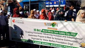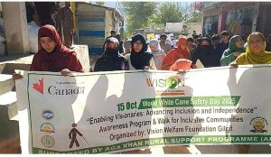 ویژن ویلفیئر فاؤنڈیشن گلگت کے زیرِ انتظام آغا خان رورل سپورٹ پروگرام کے زیر تعاون عالمی یومِ تحفظِ سفید چھڑی کے موقع پر ایک شاندار آگاہی پروگرام اور واک کا انعقاد کیا گیا۔
