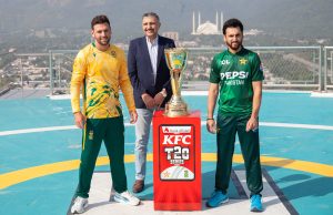 راولپنڈی کرکٹ اسٹیڈیم میں پاکستان اور جنوبی افریقا کے درمیان ٹی 20 سیریز کی ٹرافی کی رونمائی کر دی گئی۔ دونوں ٹیموں کے کپتانوں سلمان علی آغا اور ڈونوون فریرا نے ٹرافی کی تقریبِ رونمائی میں شرکت کی۔